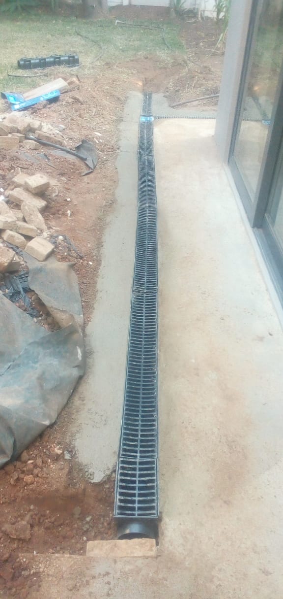 Drainage works completed to improve water flow and prevent surface water build-up, ensuring effective water management and reduced risk of flooding.